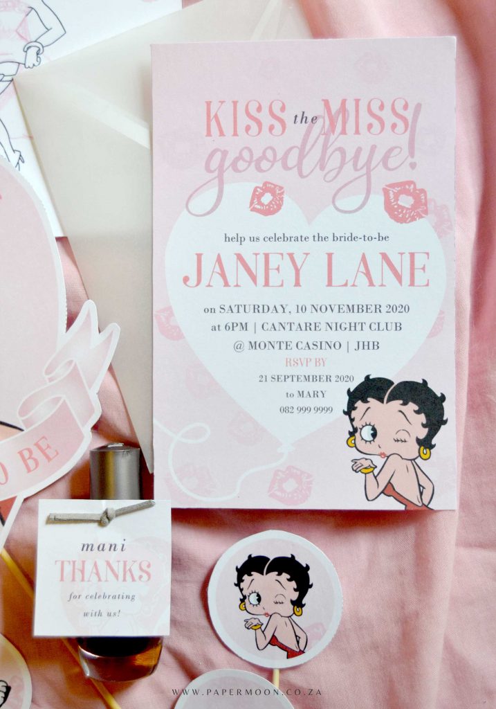 Luckily, we at Papermoon have spent time creating a super-cute and naughty Betty Boop inspired Bachelorette Printable Pack for those fun and adventurous DIY Brides!